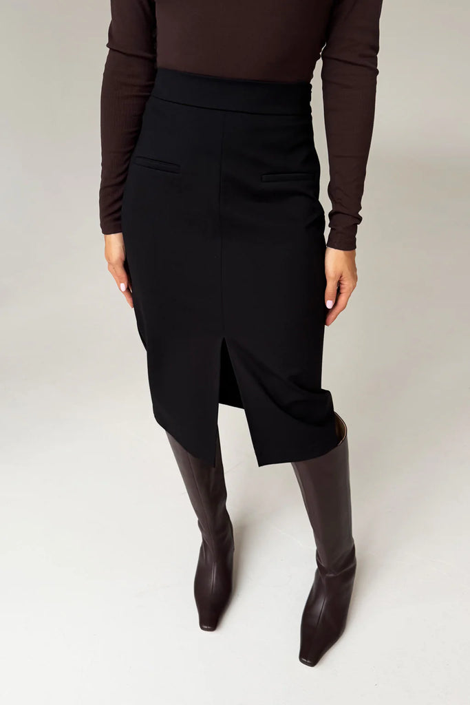 Midi ilgio, standaus ir tampraus, vidutinio storumo trikotažinio audinio sijonas Bruno. Sijonas turi skeltuką priekyje bei užtrauktuką šone. Sijono priekyje yra dekoratyvinės kišenės. Pieštuko siluetas. Šis modelis yra be galo universalus, lengvai dera su skirtingo stiliaus palaidinėmis, megztukais ir švarkais. Šis modelis yra identiškas sijonui Hugo, tačiau pasižymi trumpesniu ilgiu.