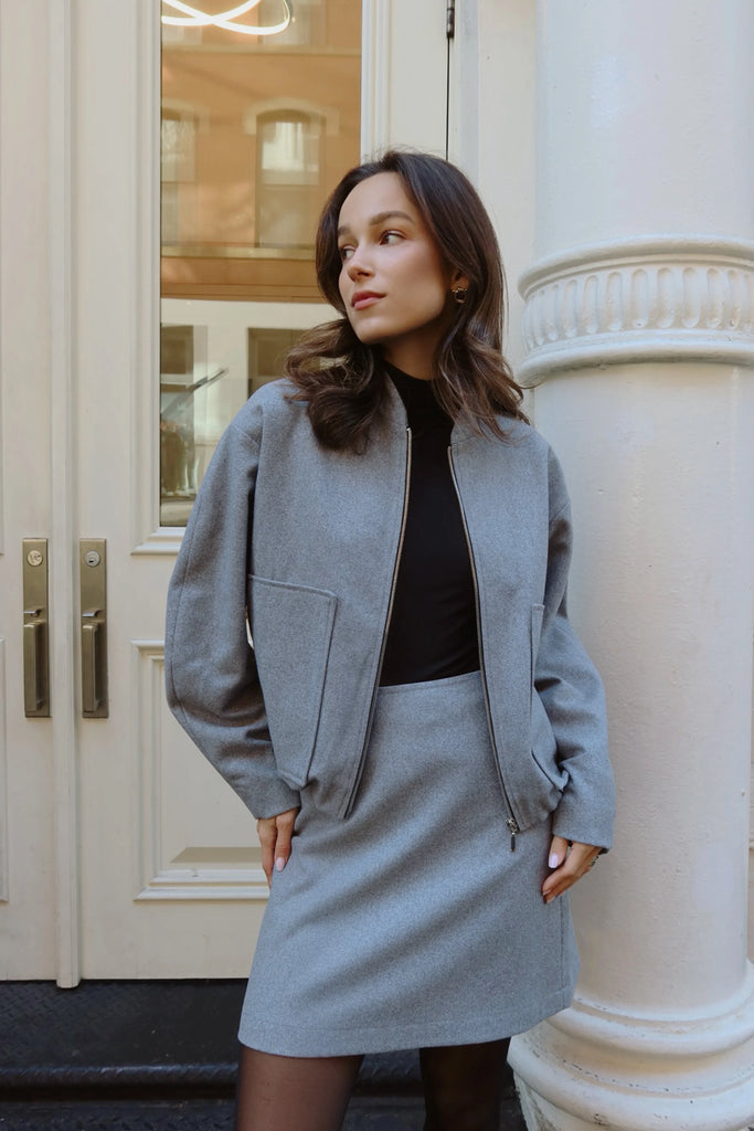Švarkas Milano - šiltas, laisvo kirpimo ir be galo universalus. Pagamintas iš lengvo, minkšto audinio su 50% vilnos, šis švarkas puikiai tiks visiems sezonams. Dėl savo lengvos tekstūros jį lengva sluoksniuoti - derinkite su palaidinėmis ar nešiokite po paltu šaltomis dienomis. Išskirtinės detalės - didelės kišenės, sidabro spalvos užtrauktukas, pamušalas bei subtilus paraukimas apačioje. Platintos rankovės ties alkūne suteikia švarkui modernumo ir išskirtinio charakterio.