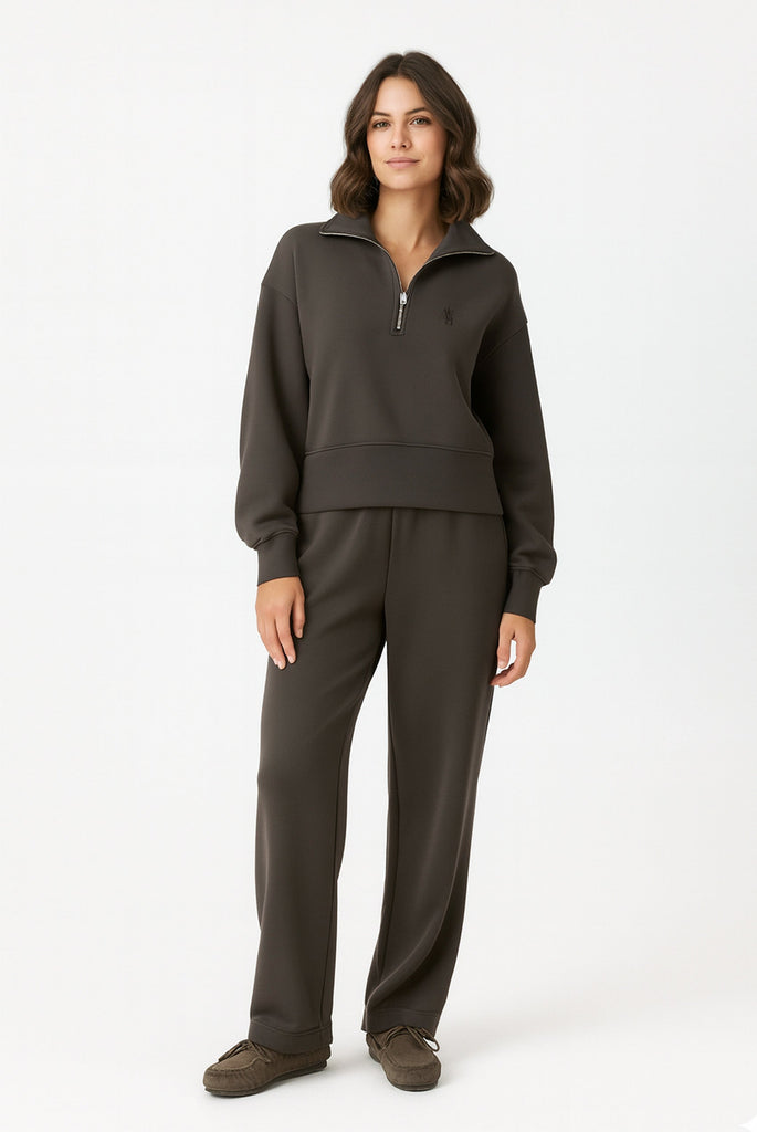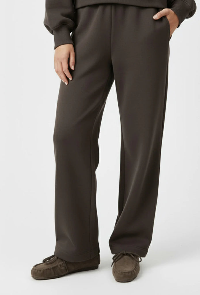 Stilingos ir jaukios, laisvo silueto kelnės Lucca. Šis modelis pasižymi plačiu kirpimu, tampriu juosmeniu bei vidiniais raišteliais, kurie leidžia susiveržti juosmenį. Audinio spalva - šalto atspalvio ruda, dar vadinama Taupe. Kelnės puikiai dera su džemperiu Remy. Tai be galo universalus modelis, kuris suteikia patogumo ir elegancijos.