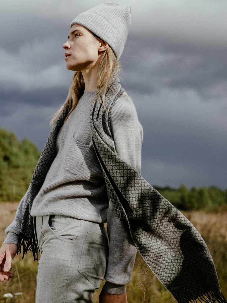 Klasikinis, tiesaus silueto, natūralios ėriukų vilnos šalikas sušildys Jus kiekvieną dieną. Tai nepakeičiamas aksesuras žiemą.