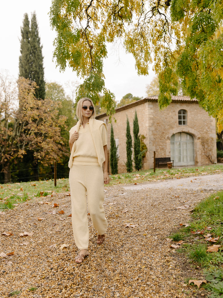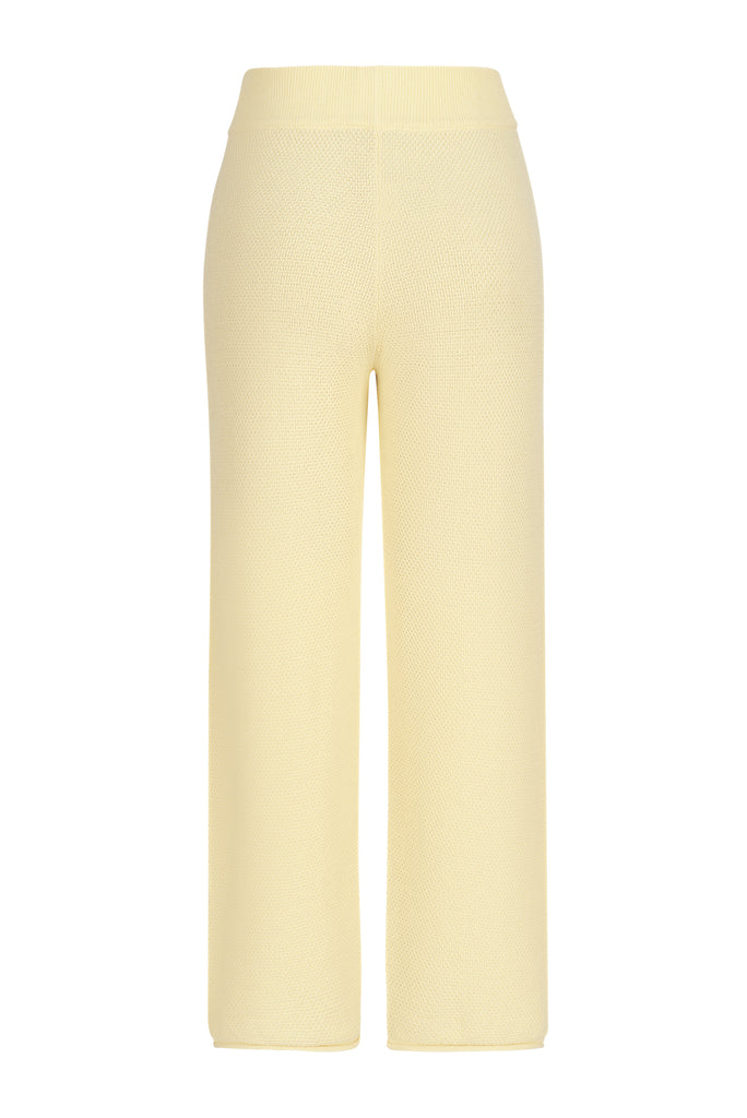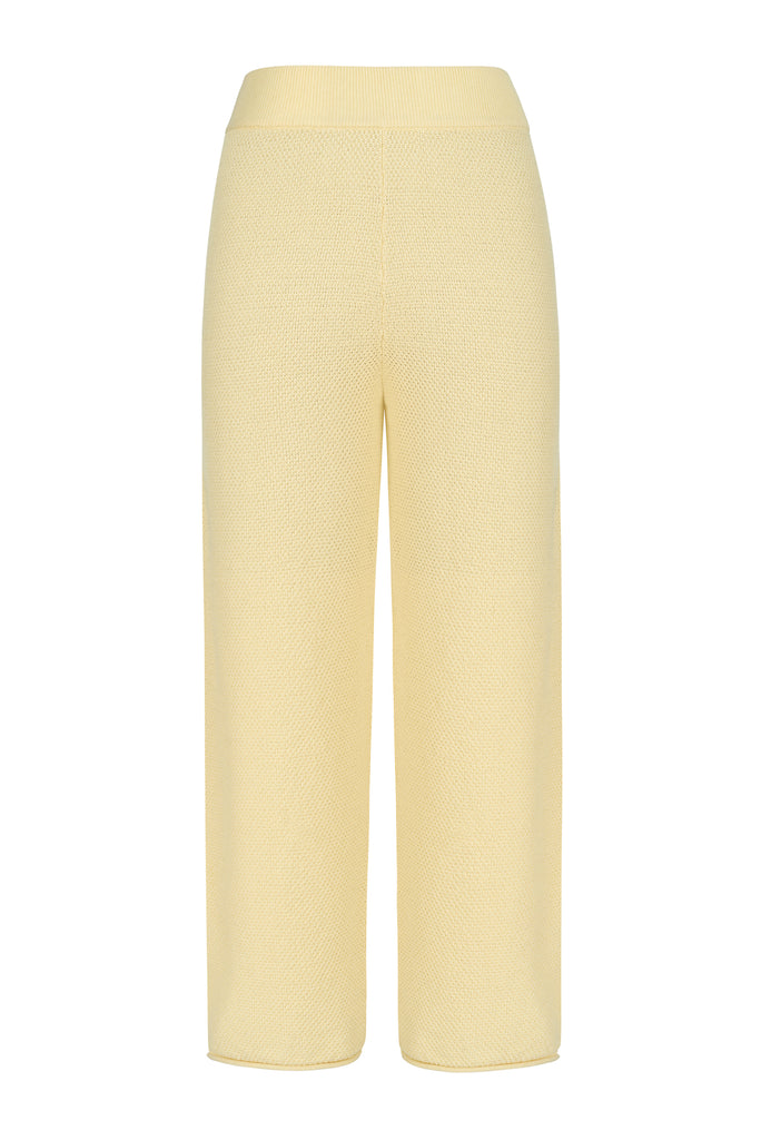 Platesnio modelio, subtilaus rašto vasariškos kelnės. Tai itin minkštos natūralios medvilnės drabužis, kuris idealiai tiks vėsesnėms vasaros dienoms. Tobulas gelsvas atspalvis, idealiai tiks prie daugelio vasariškų derinių, labai gražiai žiurisi su šokoladiniais rudais, melsvais, rausvais, pistacijų žalsvais tonais. Coocoomos naujoje kolekcijoje rasite 2 megztinius ir polo marškinėlius tinkačius prie šių kelnių: pirmasis tai tokio pačio rašto megztinis arba galite rinktis spalvotąjį juostelėmis.