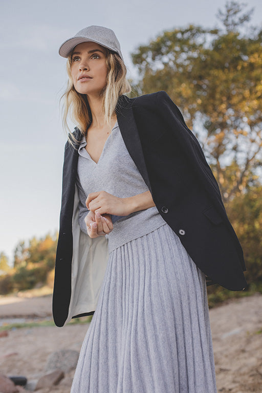 Šis stilingas kašmyro ir vilnos megztinis idealiai tinka prie daugelio audinių ir modelių kelnių. Megztinio apykaklė sustilizuota taip, kad būtų lengvai pritaikoma nešioti po švarkais ar kardiganais. Tokį modelį rekomenduojame dėvėti su naujos Coocoomos kolekcijos megztu klostuotu sijonu ir sukurti modernų ir elegantišką kostiumą.