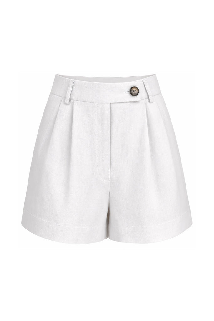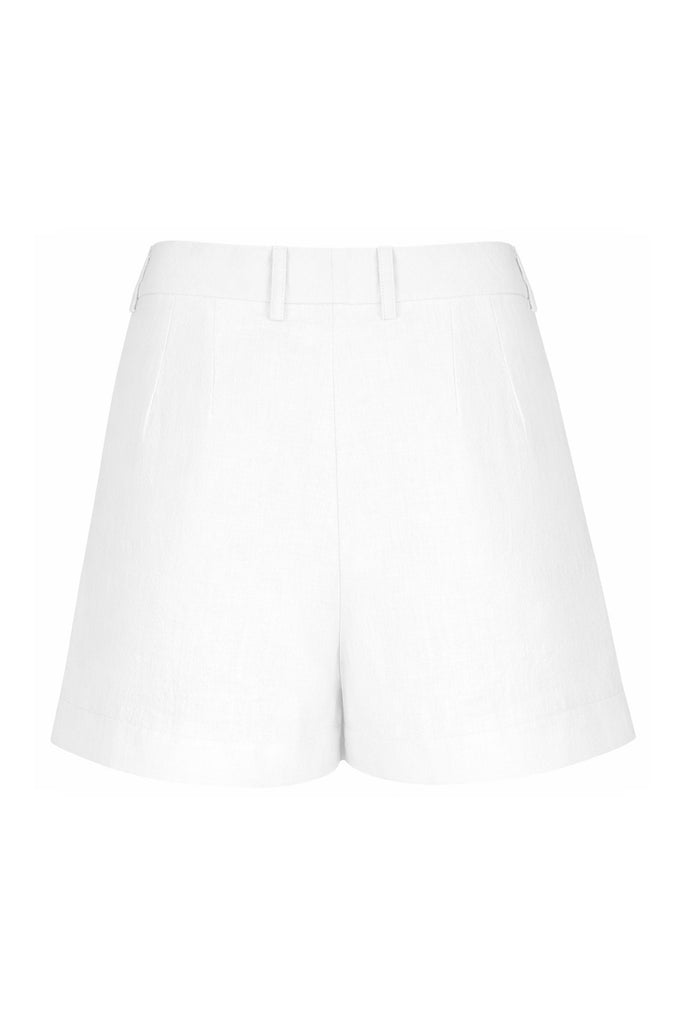 Klasikiniai, platesnio modelio, paaukštinto liemens šortai. Jų modelis puikiai dera tiek prie klasikinio, tiek prie sportinio stiliaus. Galite lengvai derinti su tos pačios kolekcijos ROMY liemene ir klasikiniu švarku – sukursite rafinuotą ir lengvai seksualų įvaizdį. Šortai sukurti iš natūralaus lino ir medvilnės audinio.