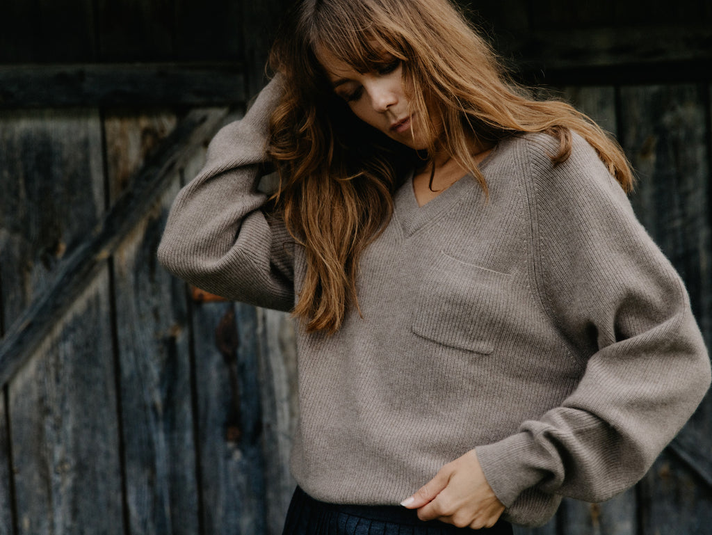 Natūralaus kašmyro ir merinosų vilnos megztinis, sukurtas Jūsų klasikiniam įvaizdžiui. Puikiai tinka prie visų tipų kelnių ir sijonų. Tai modelis, kuris gali būti nešiojamas ant nuogo kūno arba pasivilkus marškinėlius apačioje. Megztinio spalva idealiai dera su daugeliu pilkų, rusvų, baltų atspalvių. Tai puikus megztinis norinčioms jį dėvėti ne vieną sezoną. Megztinis megztas iš Mongoliškos ypatingai aukštos kokybės kašmyro ir merinosų vilnos.