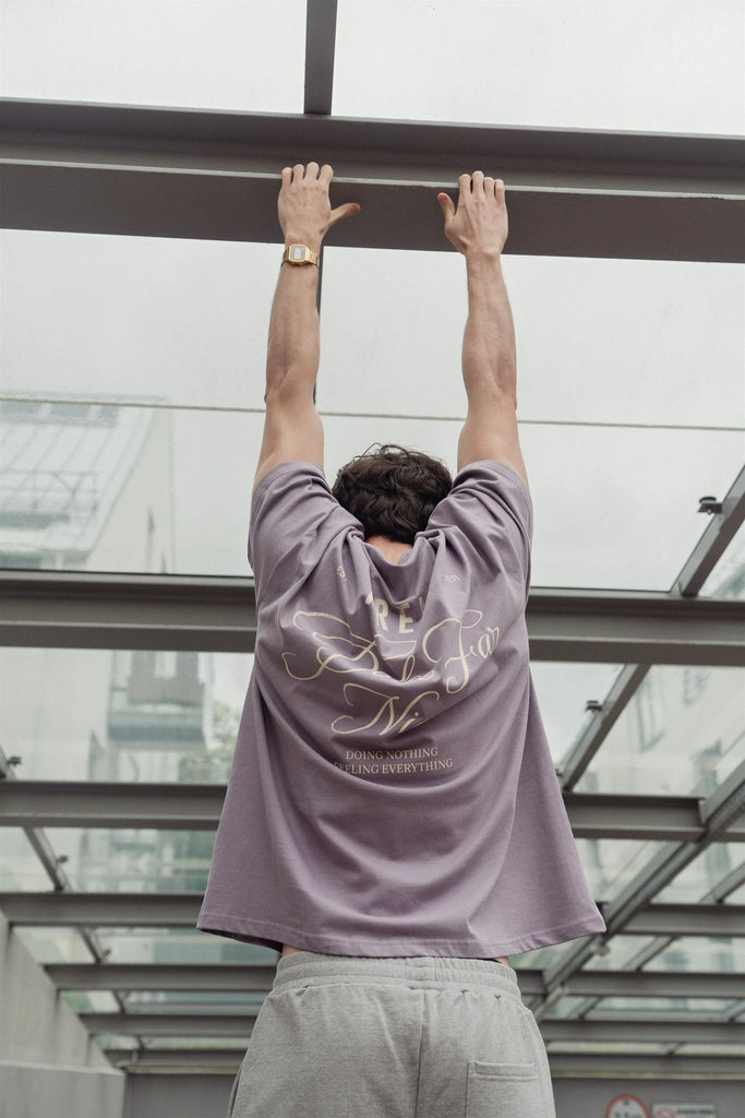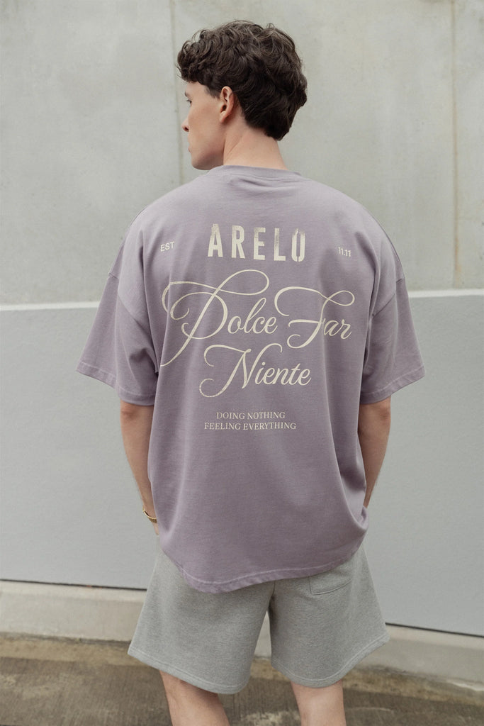 Šie laisvo kirpimo tamsiai mėlyni marškinėliai – tylus priminimas būti čia ir dabar. Pagaminti iš 100% organinės medvilnės, jie siūlo ne tik patogumą – jie atspindi požiūrį. Atsipalaidavęs siluetas natūraliai gula ant kūno, o ryškus nugaros užrašas „Dolce Far Niente“ primena, kad ramybė – tai pasirinkimas, o gebėjimas jausti – tikroji stiprybė.