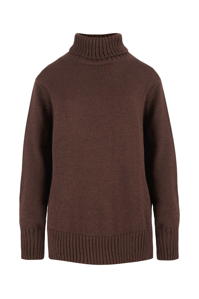 Morbido 100% merino megztinis aukštu kaklu šokoladas