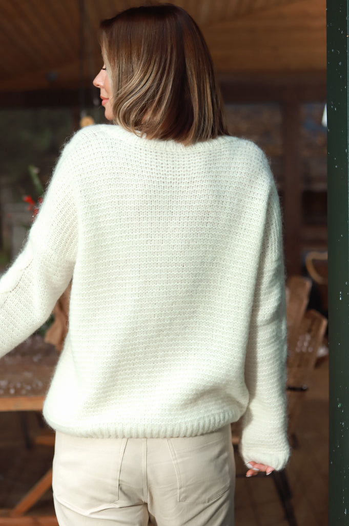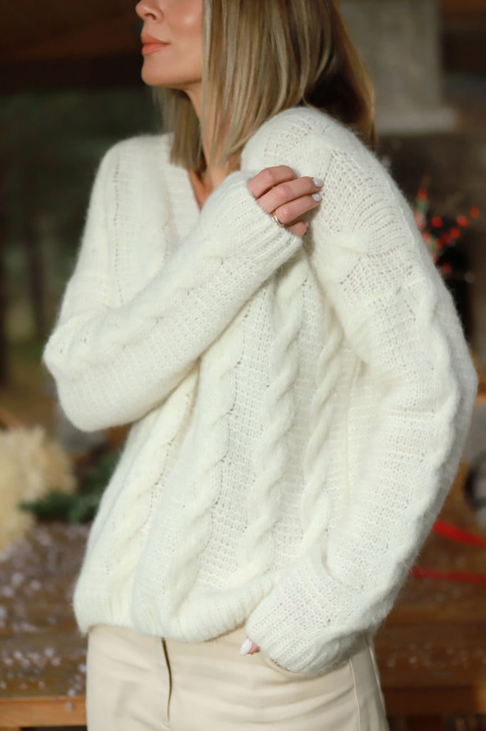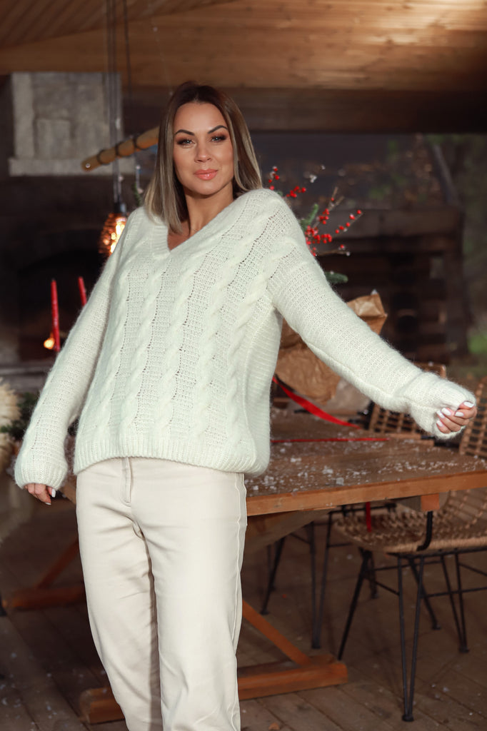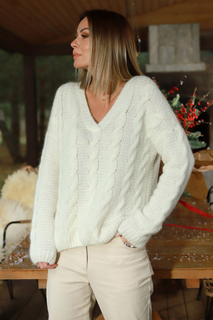 Klasikinės pynės suteikia jam išraiškingumo ir tekstūros, o minimalistinis siluetas išlaiko žinią, kad jį derinti bus galima prie daugybės derinių, kurie lydės per kasdienybę ir pasibaigus Kalėdų laikui.