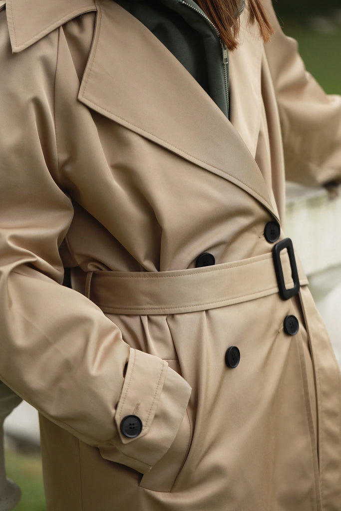 Sukurtas moterims, vertinančioms eleganciją be pastangų bei kasdienį funkcionalumą. Šis lietpaltis – nepriekaištingas palydovas tarpsezoniniu periodu. Pagamintas iš vandeniui atsparaus audinio, kuris apsaugo nuo lietaus bei yra itin lengvai valomas bei prižiūrimas.