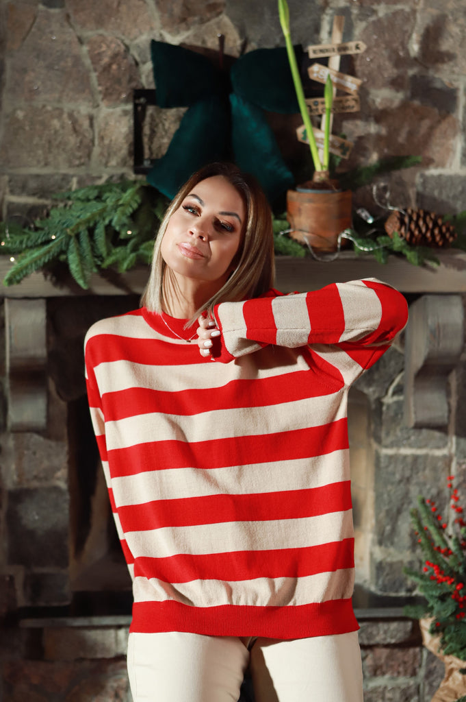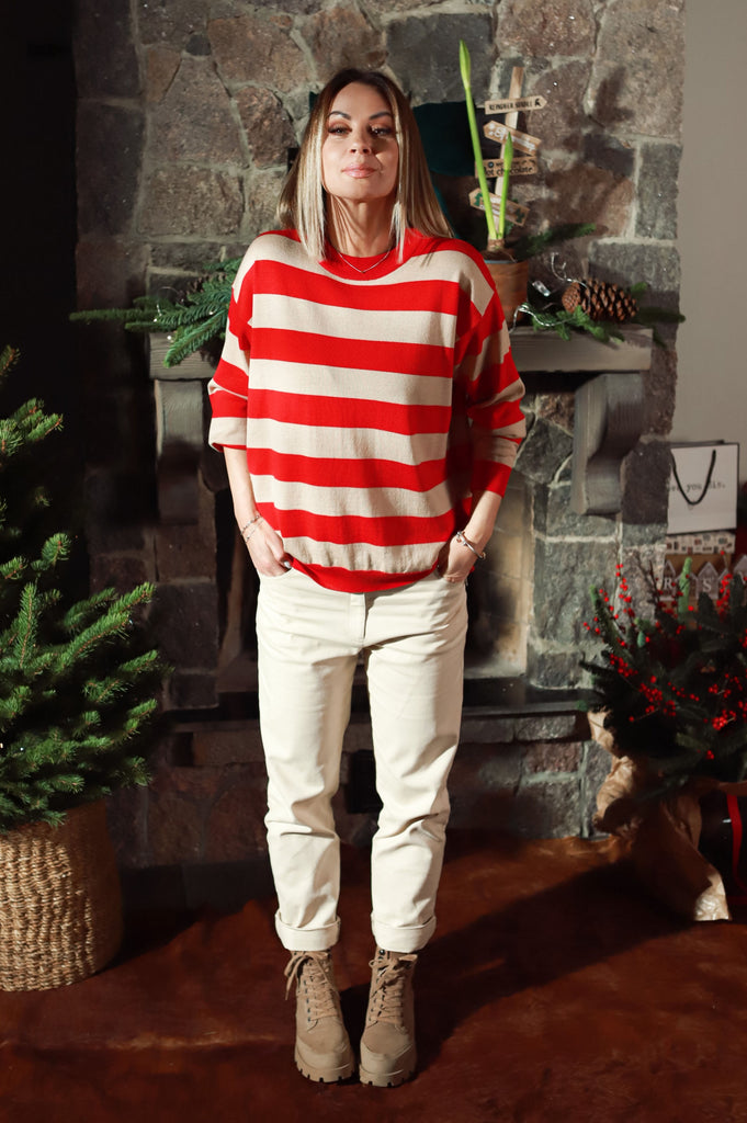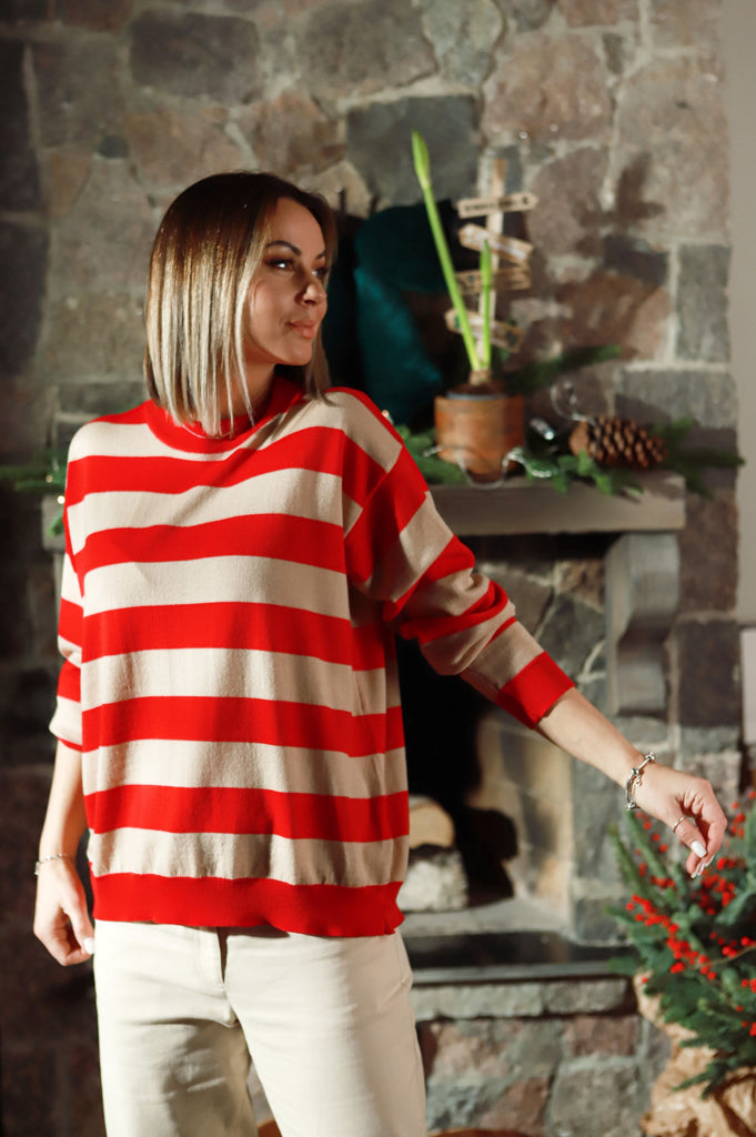 Pametus galvą dėl raudonos ir sausaininės spalvos derinio- megztuke „apgyvendinau“ abi spalvas ir galvoju, kad toks gardus derinių „saldainis“ tikrai nenuobodžiaus spintose, o prašyte prašysis į dienas, dvelkiančias tuo nuostabiu Kalėdiniu laukimu.