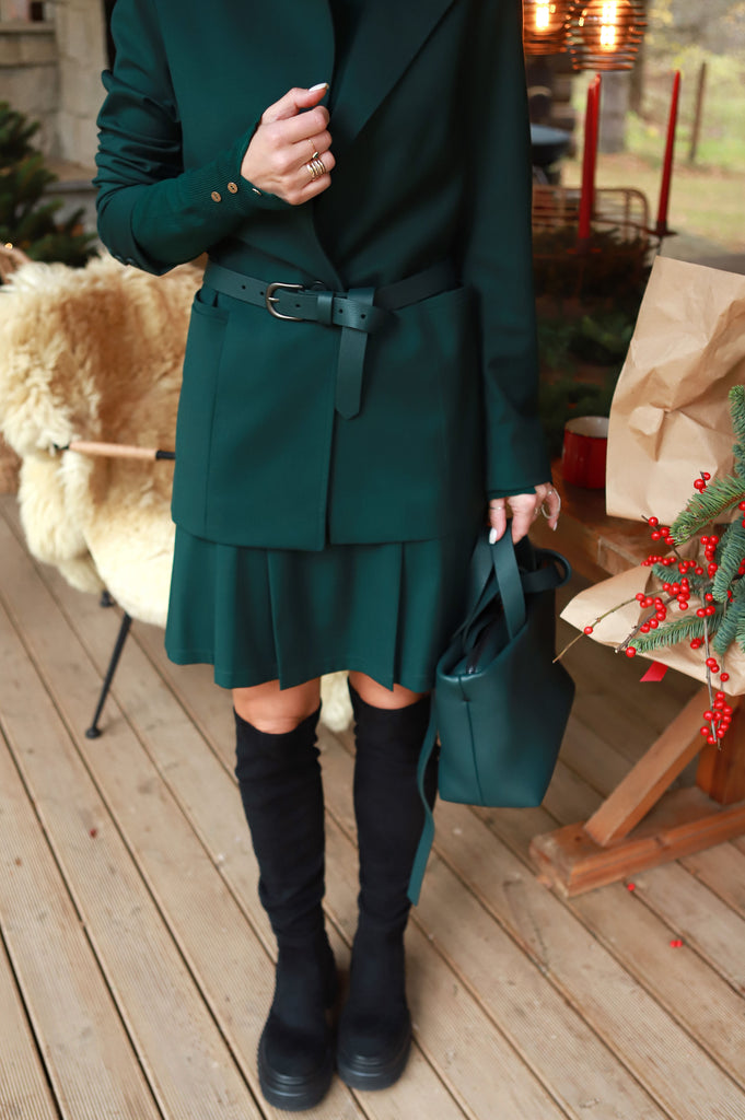 - drabužio liemens srityje yra subtiliai paslėpta guma, kuri daro drabužį itin nepretenzingą dydžiui, netoliesi „įkurdintos“ kišenės- sijoną padaro itin praktišku ir patogiu.