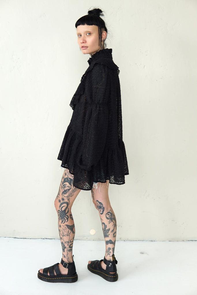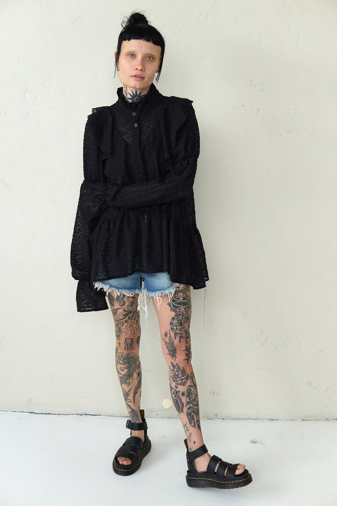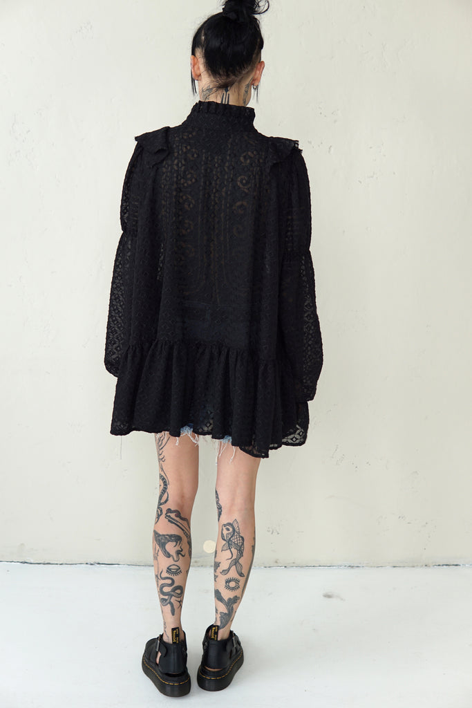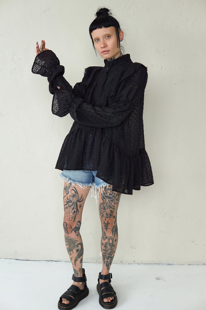 Stilinga juoda palaidinė plačiomis rankovėmis