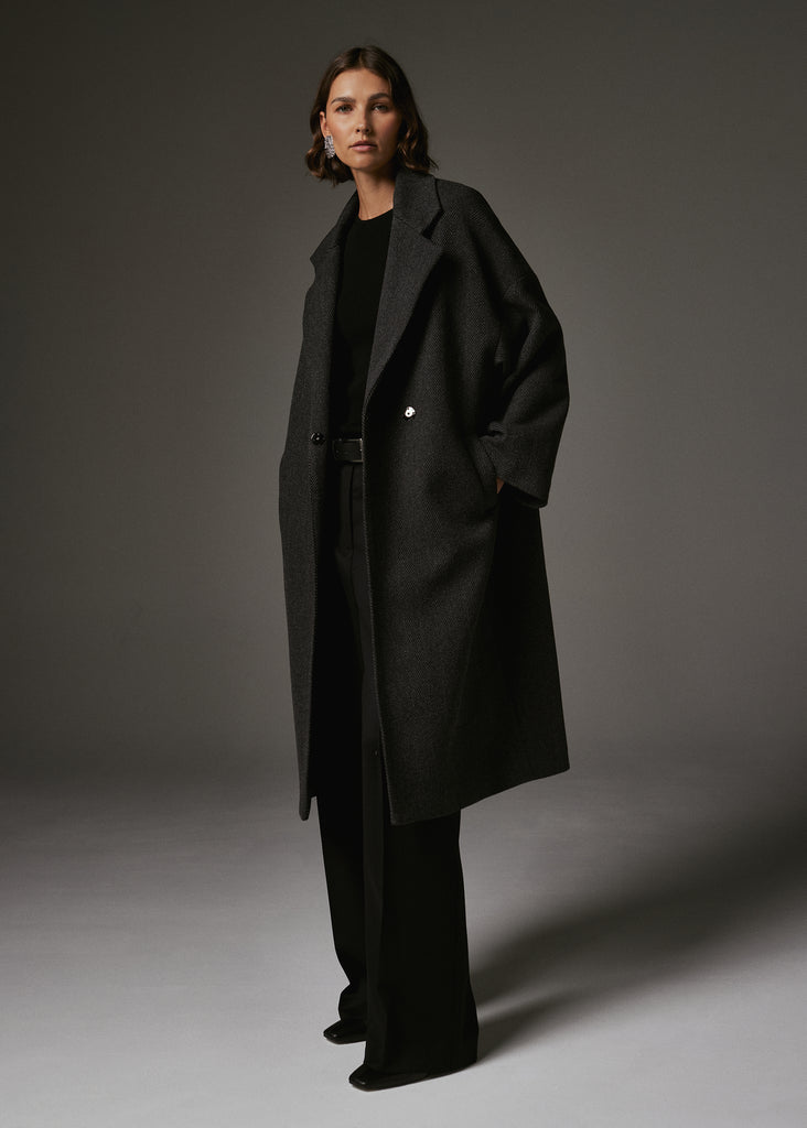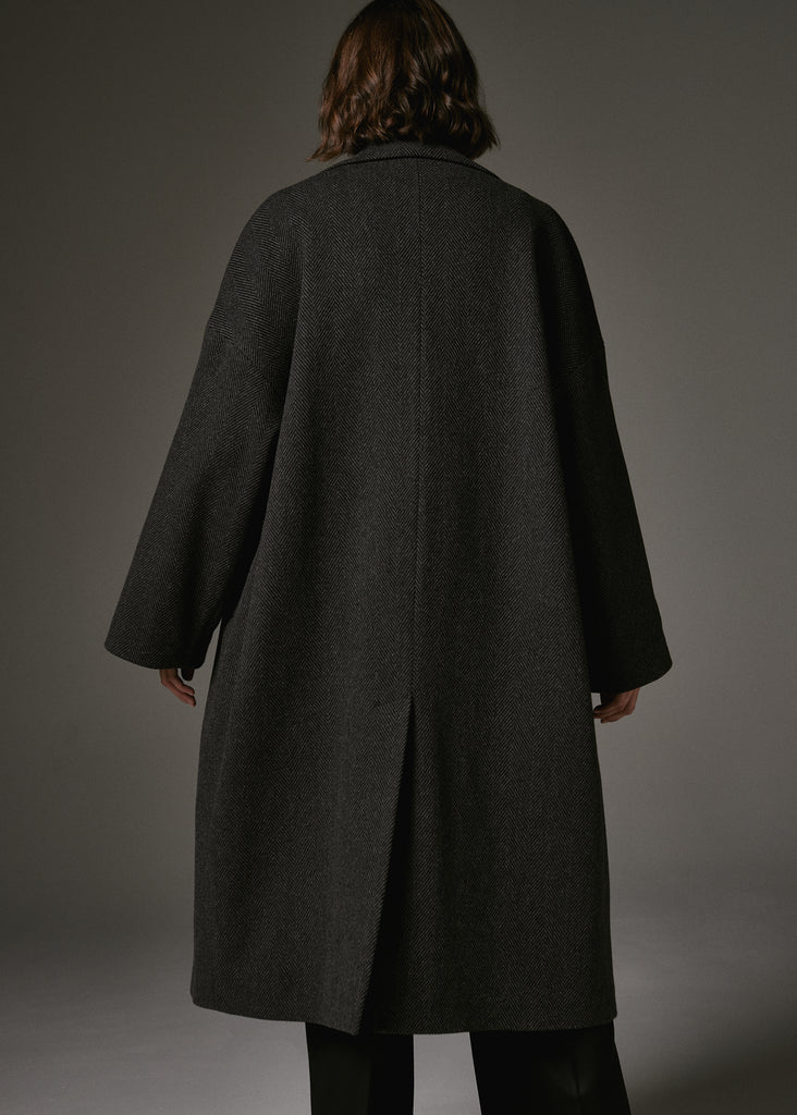 Tiesus kirpimas, plačios rankovės ir nuleisti pečiai, šiam paltui suteikia „oversized” jausmą. Dėl šio kirpimo, paltas džiugins ne tik rudenį, tačiau ir žiemą.