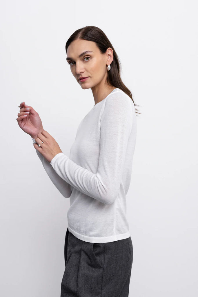 Patogi 'LINA' ilgomis rankovėmis palaidinė, pagaminta iš prabangios merino vilnos, pasižymi klasikiniu dizainu ir universaliomis spalvomis. Puikiai tinka sluoksniavimui vėsesniu oru arba nešiojimui savarankiškai. Palaidinė yra universali kasdienio garderobo dalis.