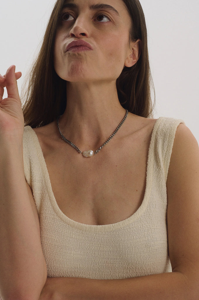Masyvi grandinėlė su barokiniu perlu