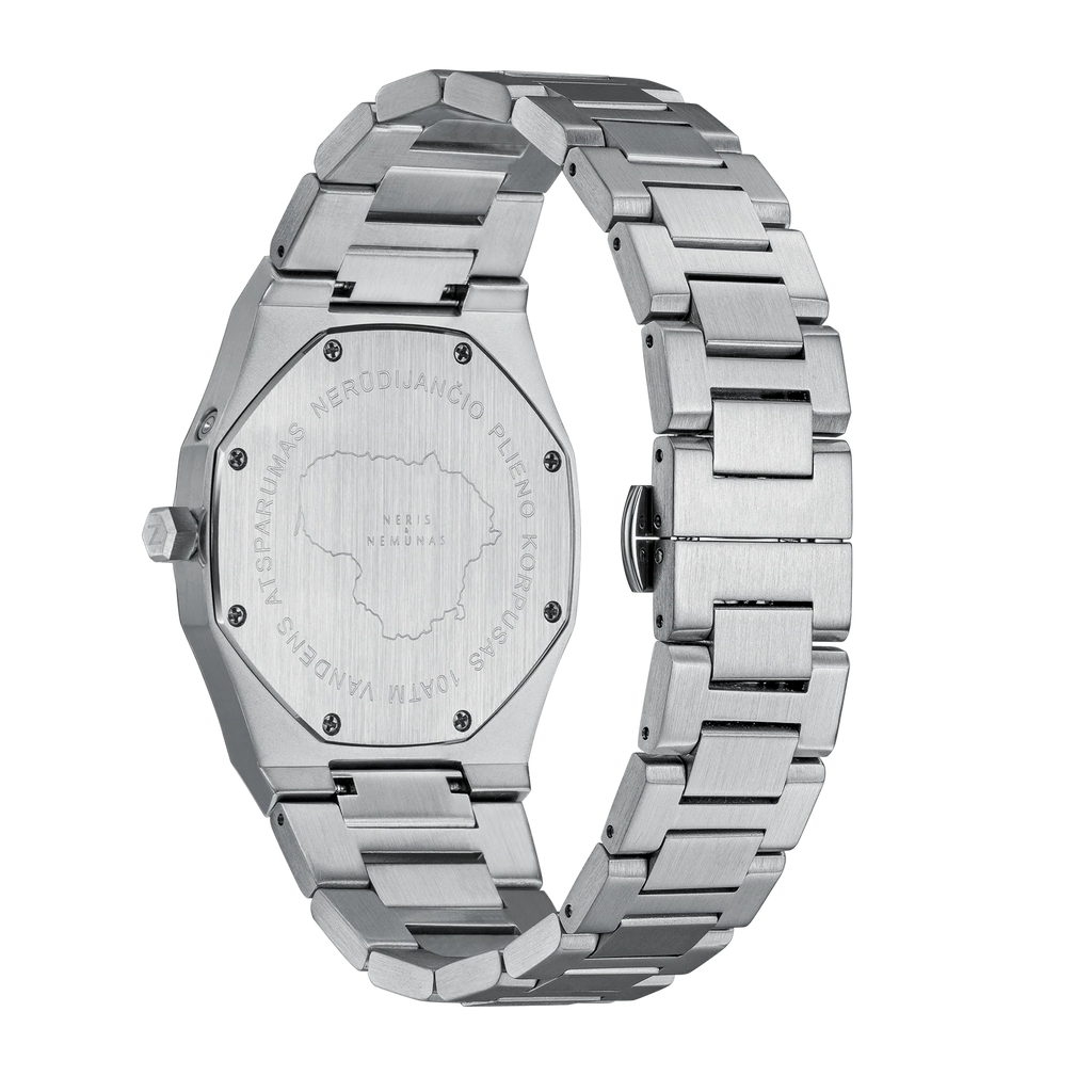 „Nemunas" laikrodžių autentiškas dizainas. Klasikinis, švarus ir paprastas rafinuotumas šio dizaino įkvėpimas. Nerūdijančio plieno nugarėlė, užtikrinanti aukščiausią kokybę.