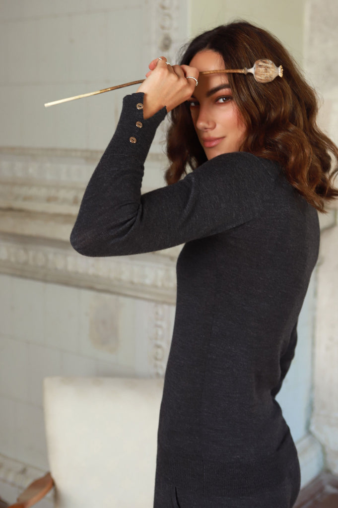 Todėl plonytis, bet labai šiltas natūralios merino vilnos megztukas, šįkart be "golfinio" kaklo toms- kurioms „aukštakakliai“ rūbai nėra prie širdies.